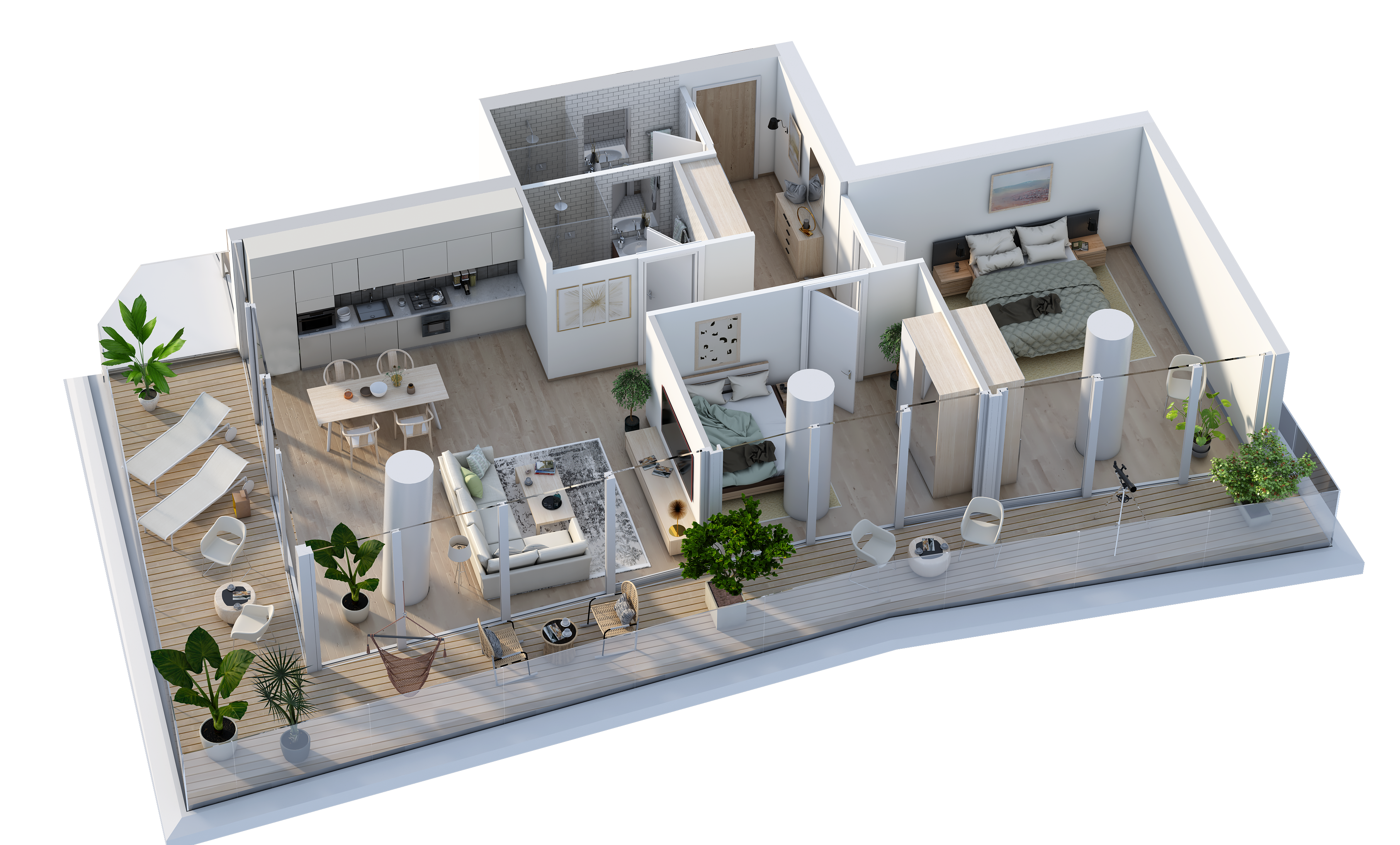 В Green Cape Botanico - Каждая квартира полностью отремонтирована с системой "умный дом", с индивидуальной системой отопления и кондиционирования, кухонной мебелью и оборудованными санузлами.